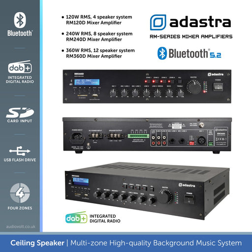 DETAILS This Adastra RM-Series ceiling speaker background music system is designed for restaurants, pubs, cafés and retail spaces requiring reliabl...