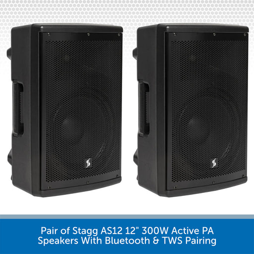 Pair of Stagg AS12 12" 300W Active PA Speakers With Bluetooth & TWS Pairing