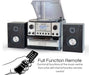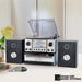 - 6-in-1 Music System – Plays vinyl, CDs, Bluetooth audio, DAB+/FM radio, cassette tapes, and USB MP3 files