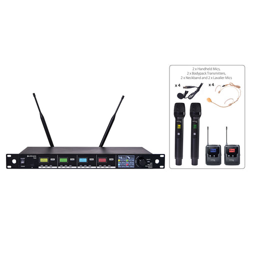 Citronic TU4-C Quad PLL Tuneable UHF Wireless Microphone System - 2 x Handheld & 2 x Bodypacks