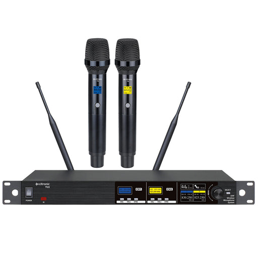 Citronic TU2-H PLL Tuneable Dual UHF True Diversity Wireless Microphone System with 2 x Handheld Microphones