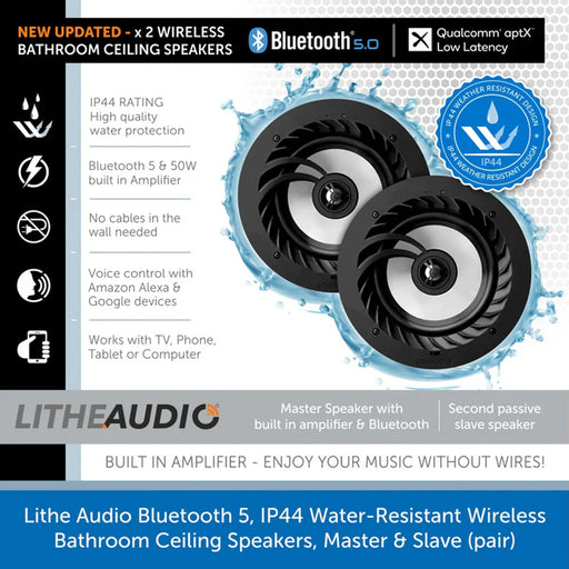 Lithe Audio Bluetooth, Bathroom Wireless Ceiling Speakers - IP44 Water-Resistant (pair)