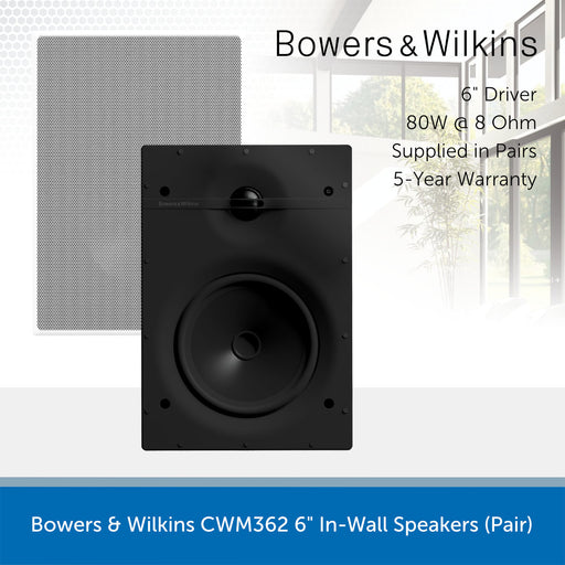 Bowers & Wilkins CWM362 300 Series 6" In Wall Speaker (Pair)