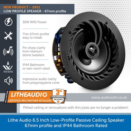Lithe Audio 6.5 Inch Low-Profile Passive Ceiling Speaker - 67mm profile & IP44 Bathroom Rated