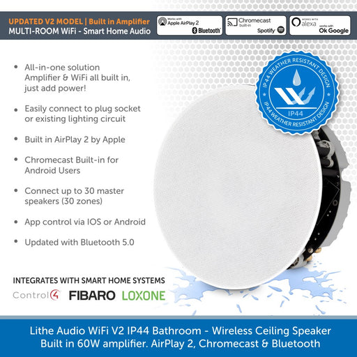 Lithe Audio WiFi V2 | Multi Room IP44 Bathroom Ceiling Speaker (AirPlay 2, Chromecast & Bluetooth)