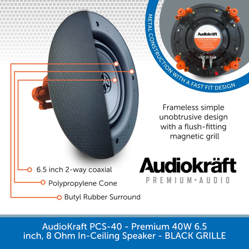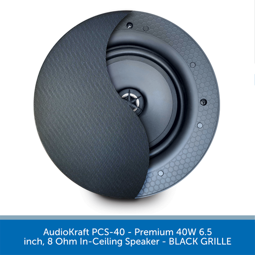 AudioKraft PCS-40-BK Black In-Ceiling Speaker - Premium 40W 6.5 inch 8 Ohms