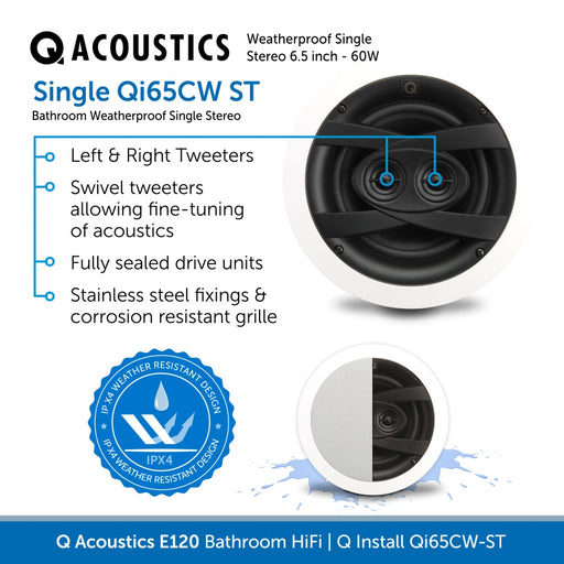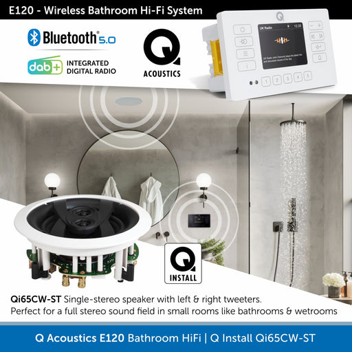 Q Acoustics E120 Bathroom Installed HiFi System | Bluetooth & DAB Radio | Q Install Qi65CW-ST Ceiling Speaker