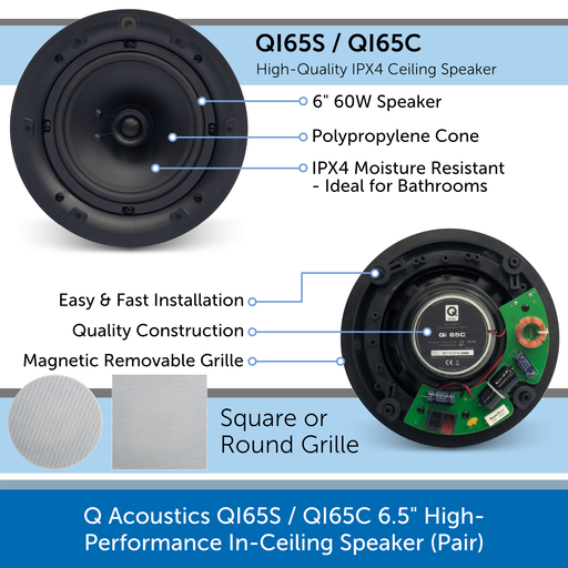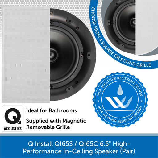Q Install QI65S / QI65C 6.5 inch High-Performance IPX4 In-Ceiling Speaker (Pair)