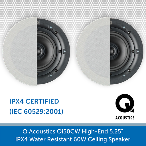 Original price £269.00 (inc. VAT) - Original price £269.00 (inc. VAT)Original price £269.00 (inc. VAT)£269.00 (inc. VAT)£269.00 (inc. VAT) - £269.00 (inc. VAT)Current price £269.00 (inc. VAT)| /DETAILS The Q Install Qi50CW IPX4 certified ceiling speaker is a premium install solution for high humidity areas, such as bathrooms, saunas, wetro...