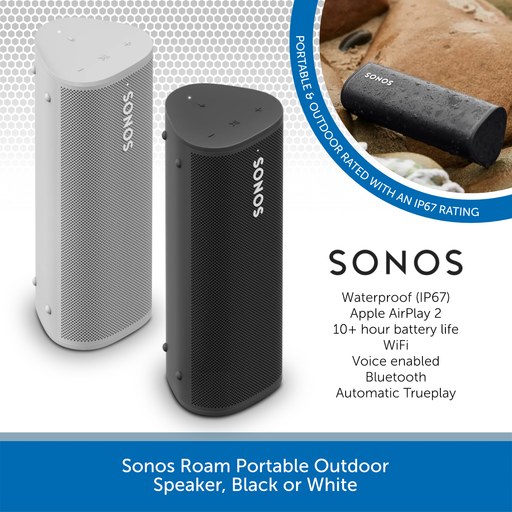 Sonos Roam 2 – Portable Waterproof Smart Speaker with Bluetooth & Wi-Fi, Black or White