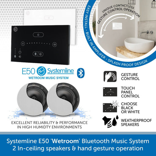 Systemline E50 - Wetroom IPX4 Rated In-Ceiling Speaker System, Bluetooth connectivity & hand gesture operation