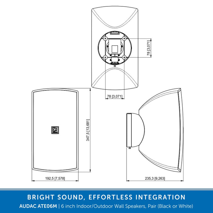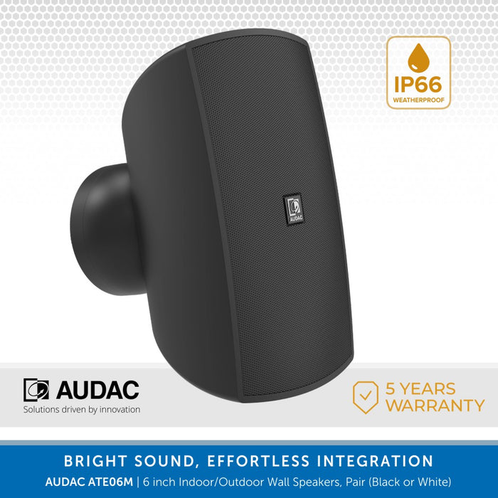 AUDAC ATEO6M 6 inch Indoor / Outdoor Wall Speakers, Pair (Black or White) - IP66 Rated