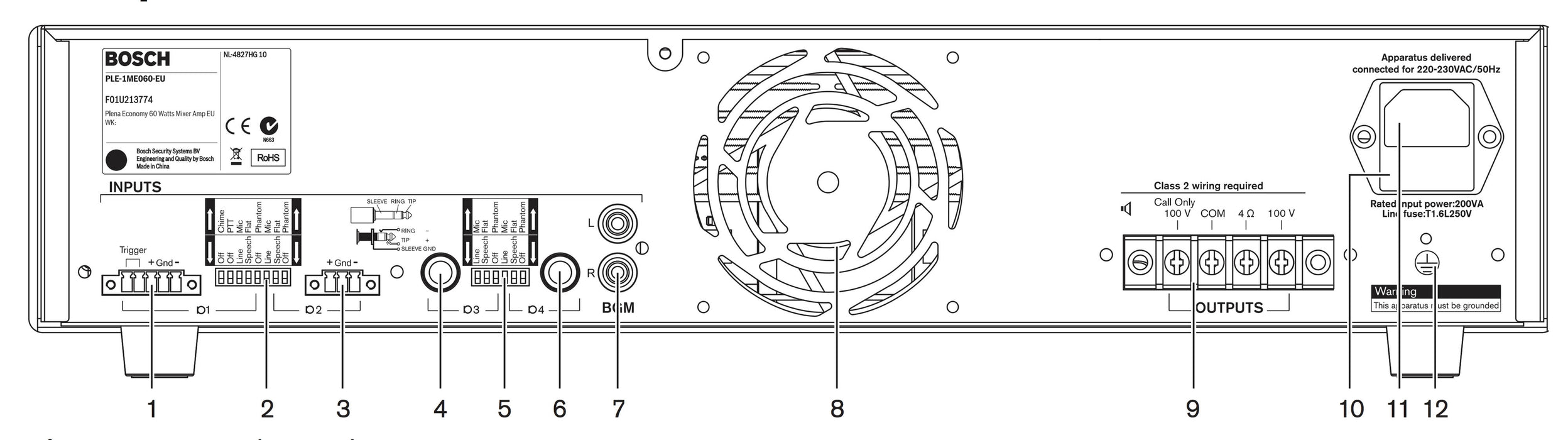 Bosch Plena PLE-1ME120 Mixer Amplifier Specifications