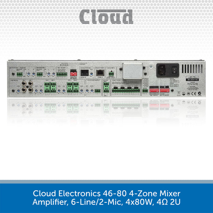 Cloud Electronics 46-80 4-Zone Mixer Amplifier, 6-Line/2-Mic, 4x80W, 4Ω 2U