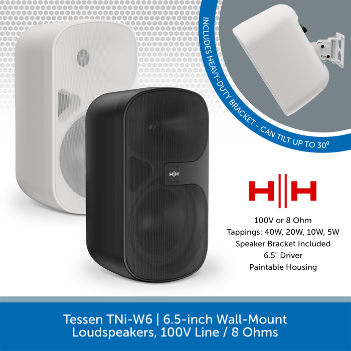 HH Audio, Tessen TNi-W6 | 6.5-inch Wall Mount Speakers, 100V Line / 8 Ohms