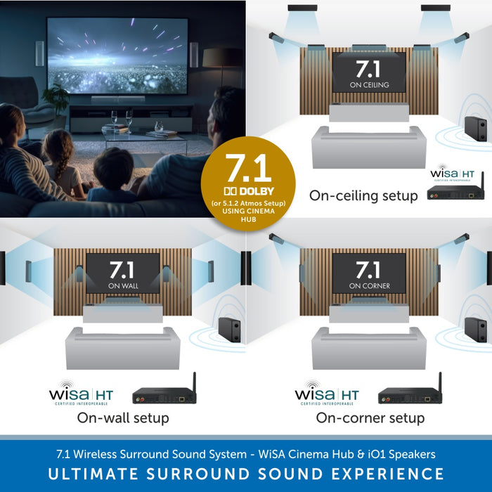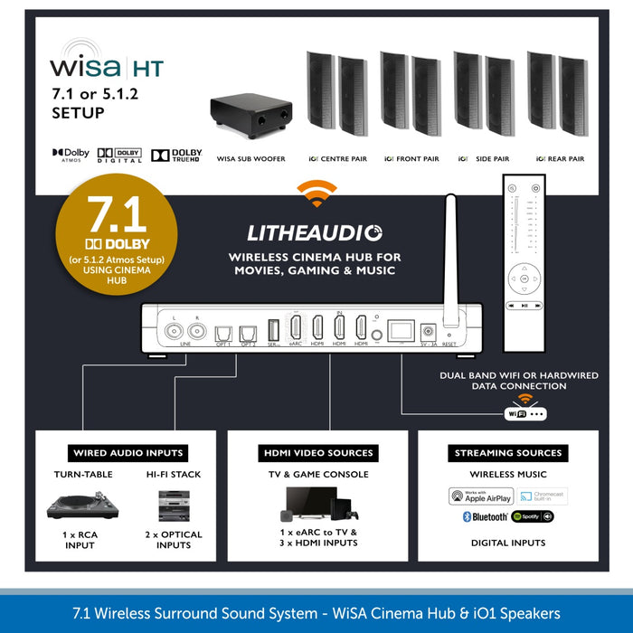 Lithe Audio 7.1 Wireless Surround Sound Cinema System - WiSA Cinema Hub & i01 Speakers