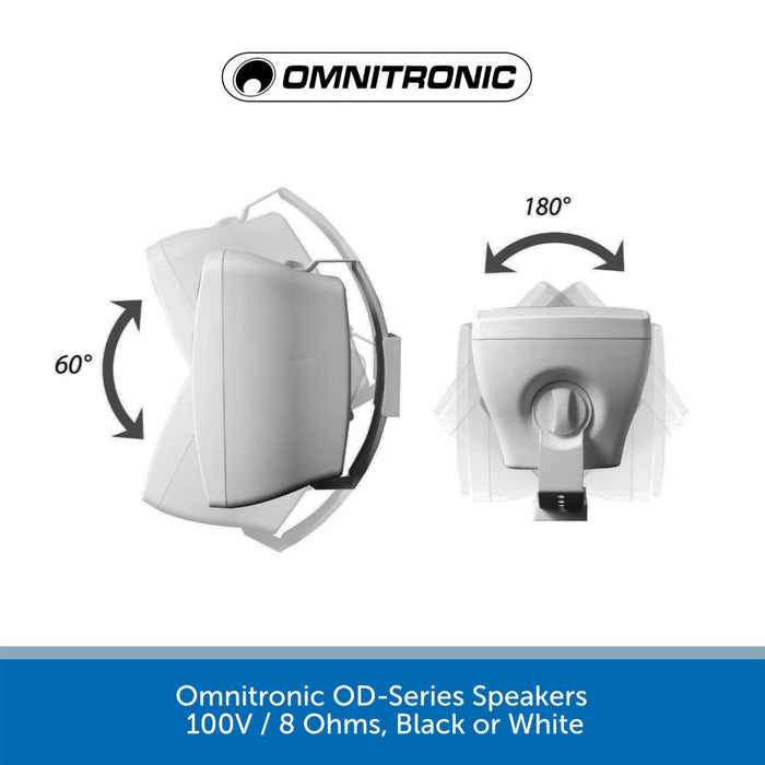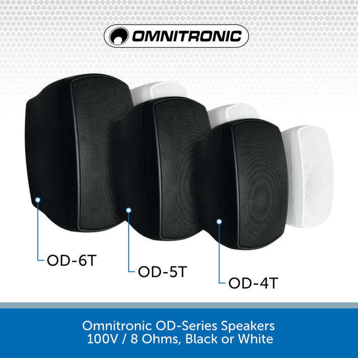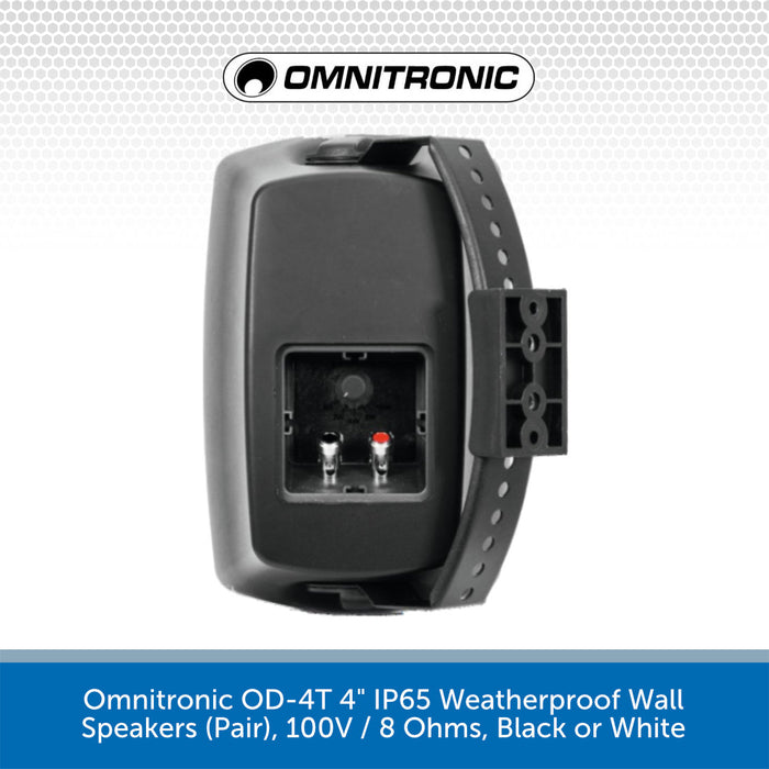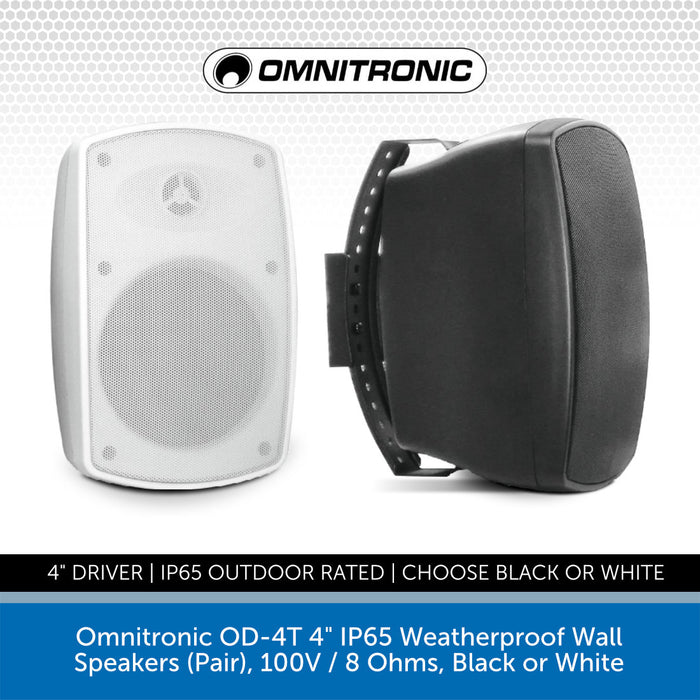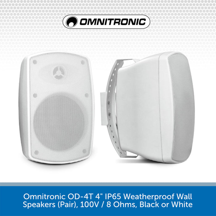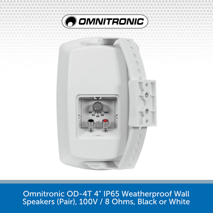 Omnitronic OD-4T 4" IP65 Weatherproof Wall Speakers (Pair), 100V / 8 Ohms, Black or White