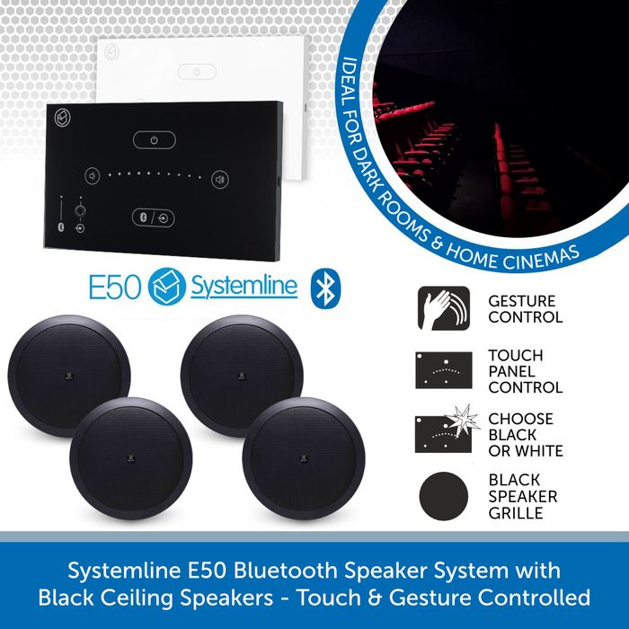 Systemline E50 Bluetooth Speaker System with Black Ceiling Speakers - Touch & Gesture Controlled